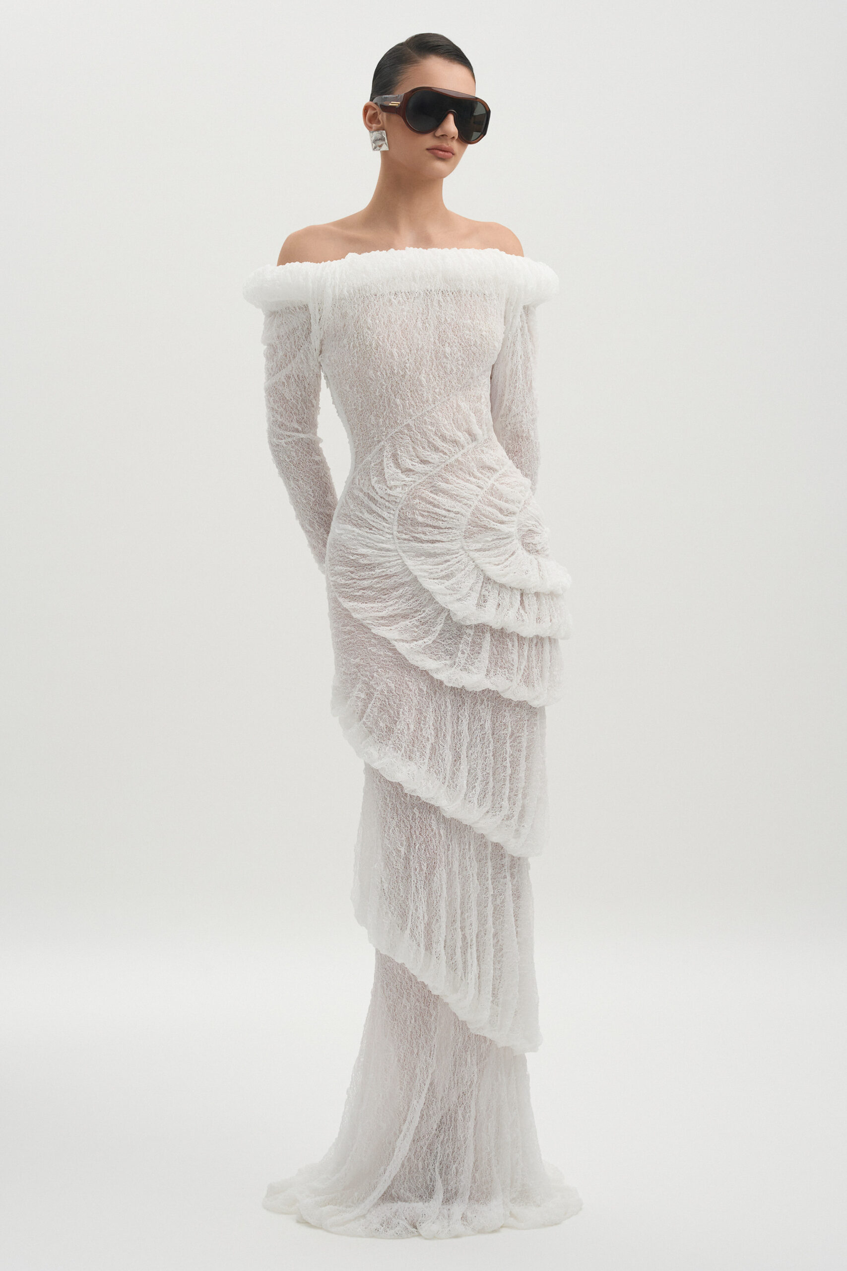 – Rose crystal beaded tulle – Adjustable straps – Hem lining